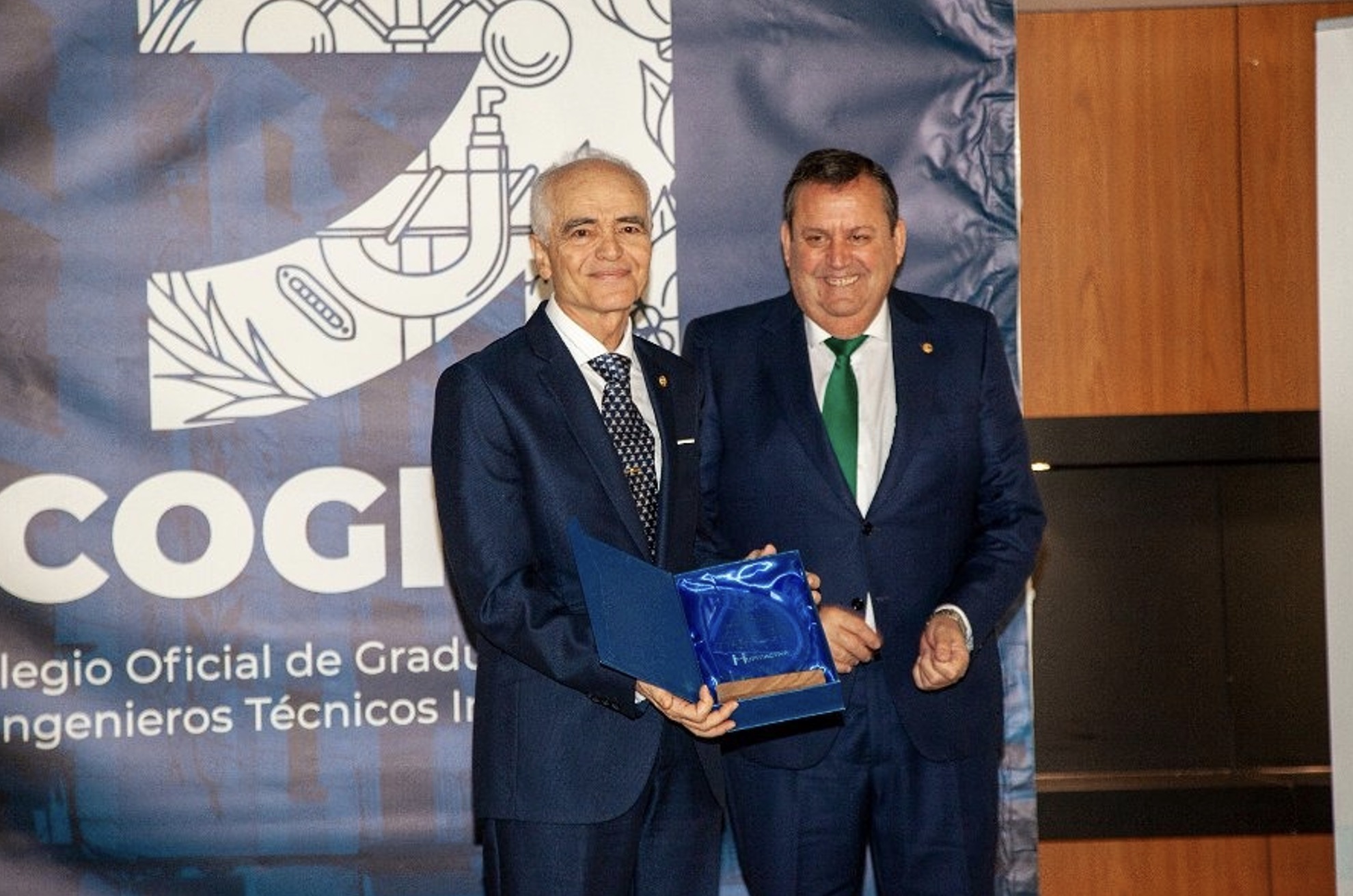 La distinción fue entregada por Rafael Fernández, decano del Colegio Oficial de Ingenieros Técnicos Industriales de Jaén, junto a Alberto Chamocho, delegado de Mupiti en Jaén, en un acto cargado de cercanía y reconocimiento.